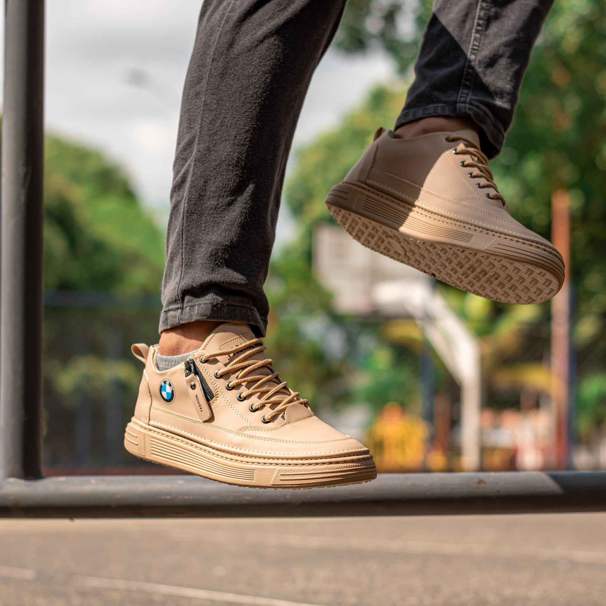 son zapatillas tipo sneaker con detalles inspirados en el mundo automotriz. Su estructura resistente y suela texturizada ofrecen confort y firmeza en cada paso. El diseño combina funcionalidad con un toque distintivo que resalta en cualquier entorno urbano.